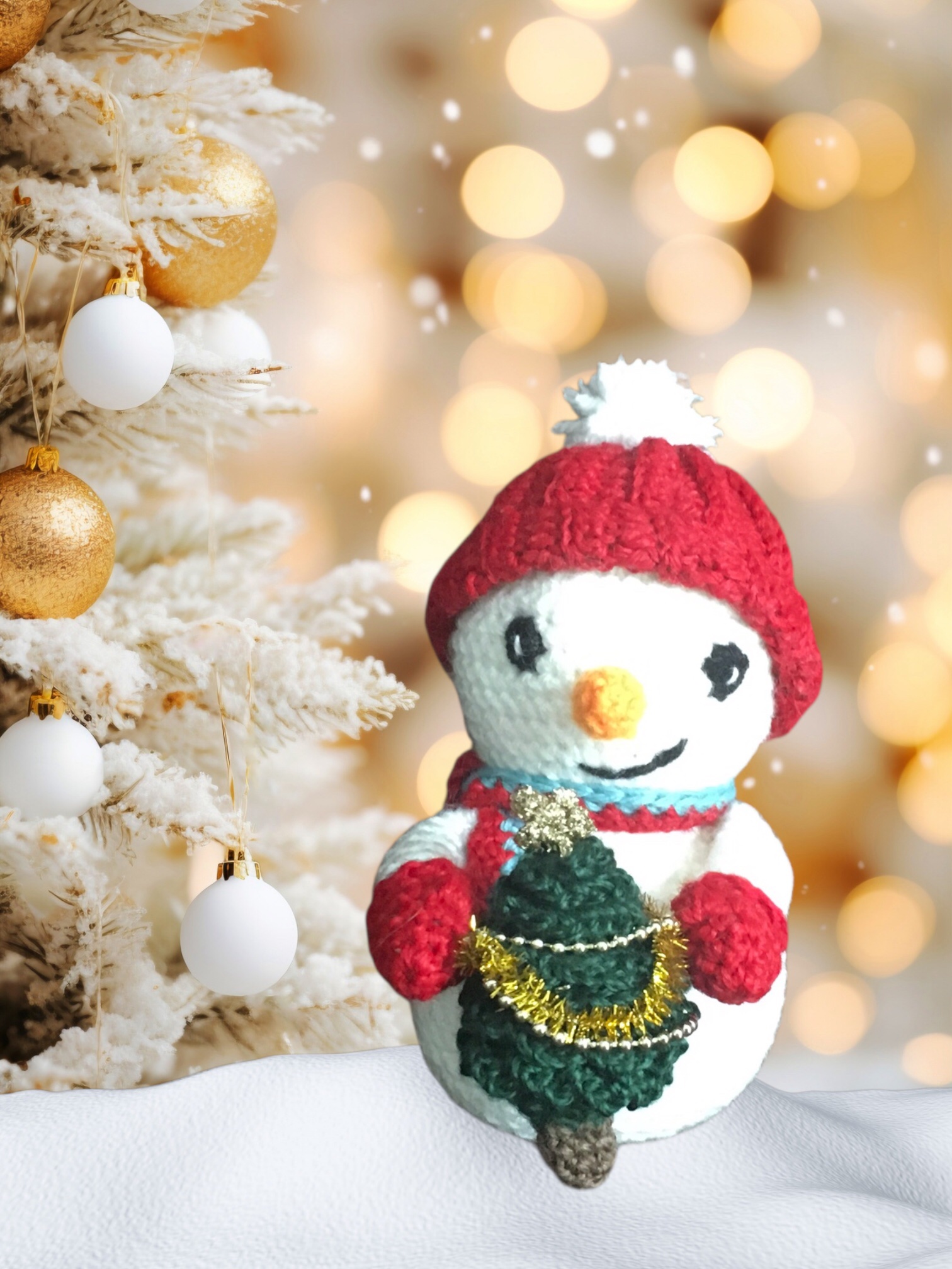 Il est très fier avec son sapin qu'il a joliment décoré .
